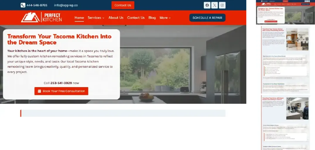 I created a professional, user-friendly website for Perfect Kitchen, a kitchen remodeling company serving Tacoma, WA tacomakitchenremodeling-wa.com. The site showcases completed projects, highlights remodeling services, and includes clear calls to action for quote requests. Designed with local SEO in mind, it helps the business reach more Tacoma homeowners looking for high-quality kitchen renovations.